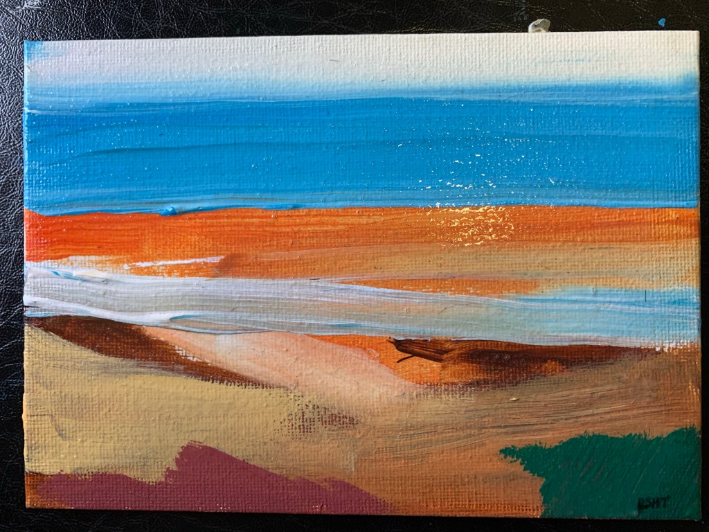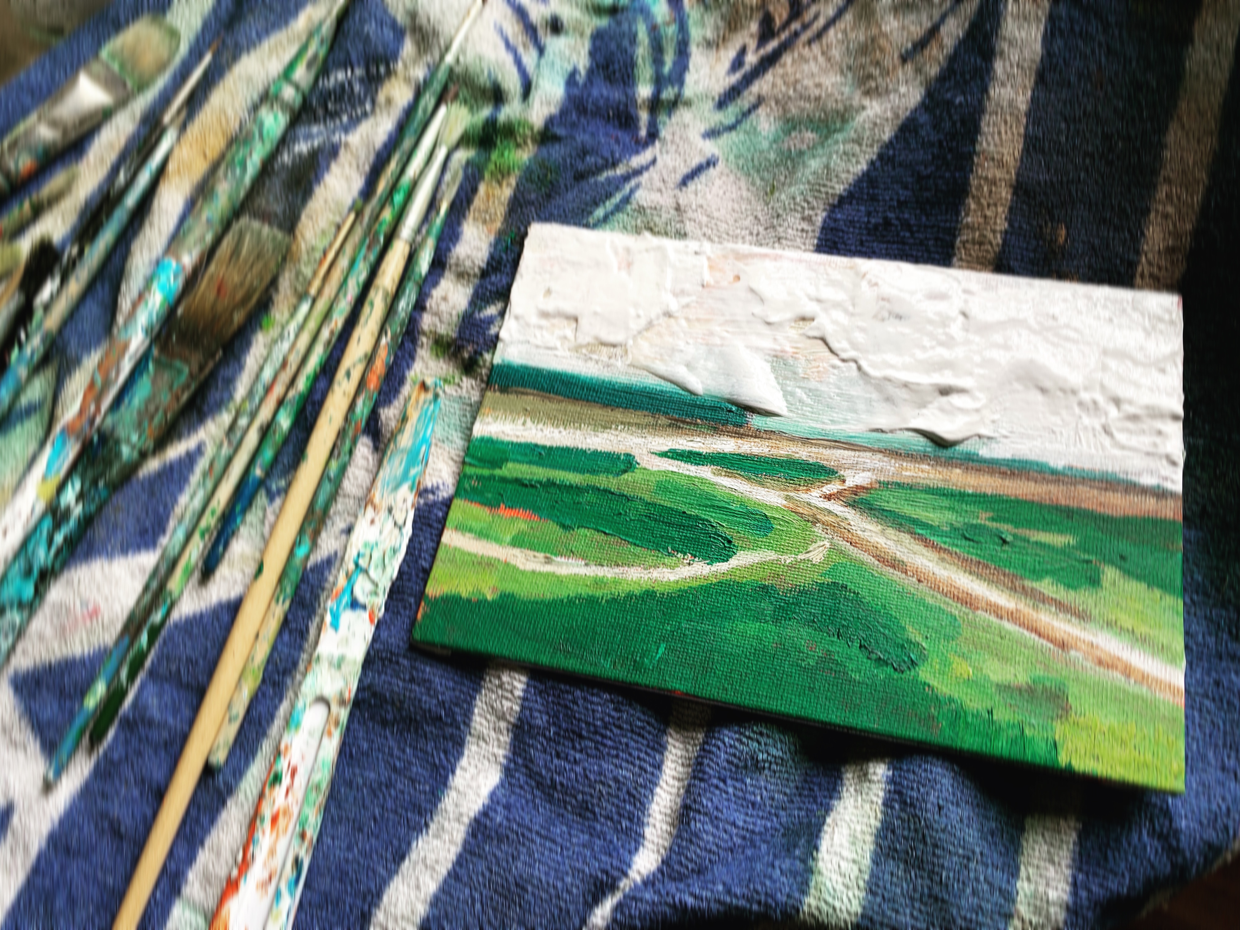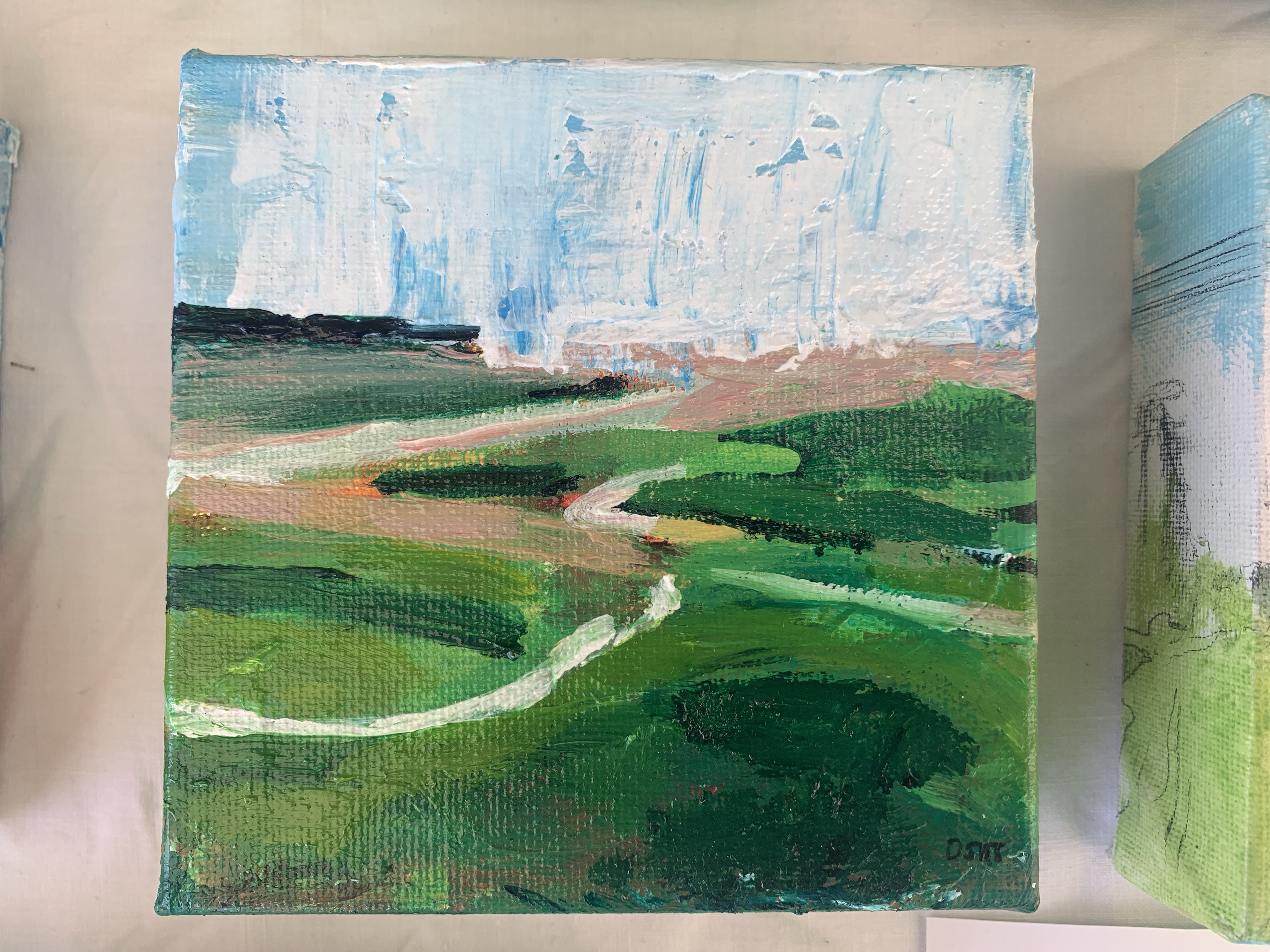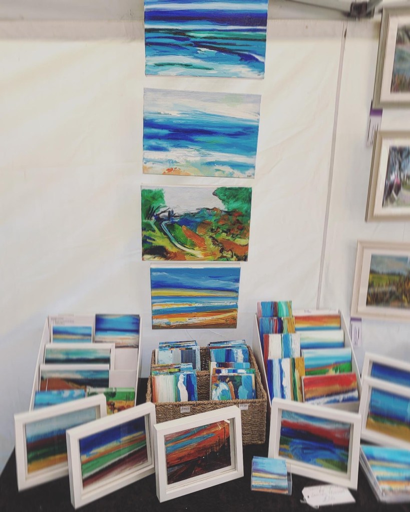The artwork that I am publicly exhibiting are mainly landscapes and seascapes. I like to charge my painting with colour and expression, using textures and mark making to explore mediums and my response to the observed environment.